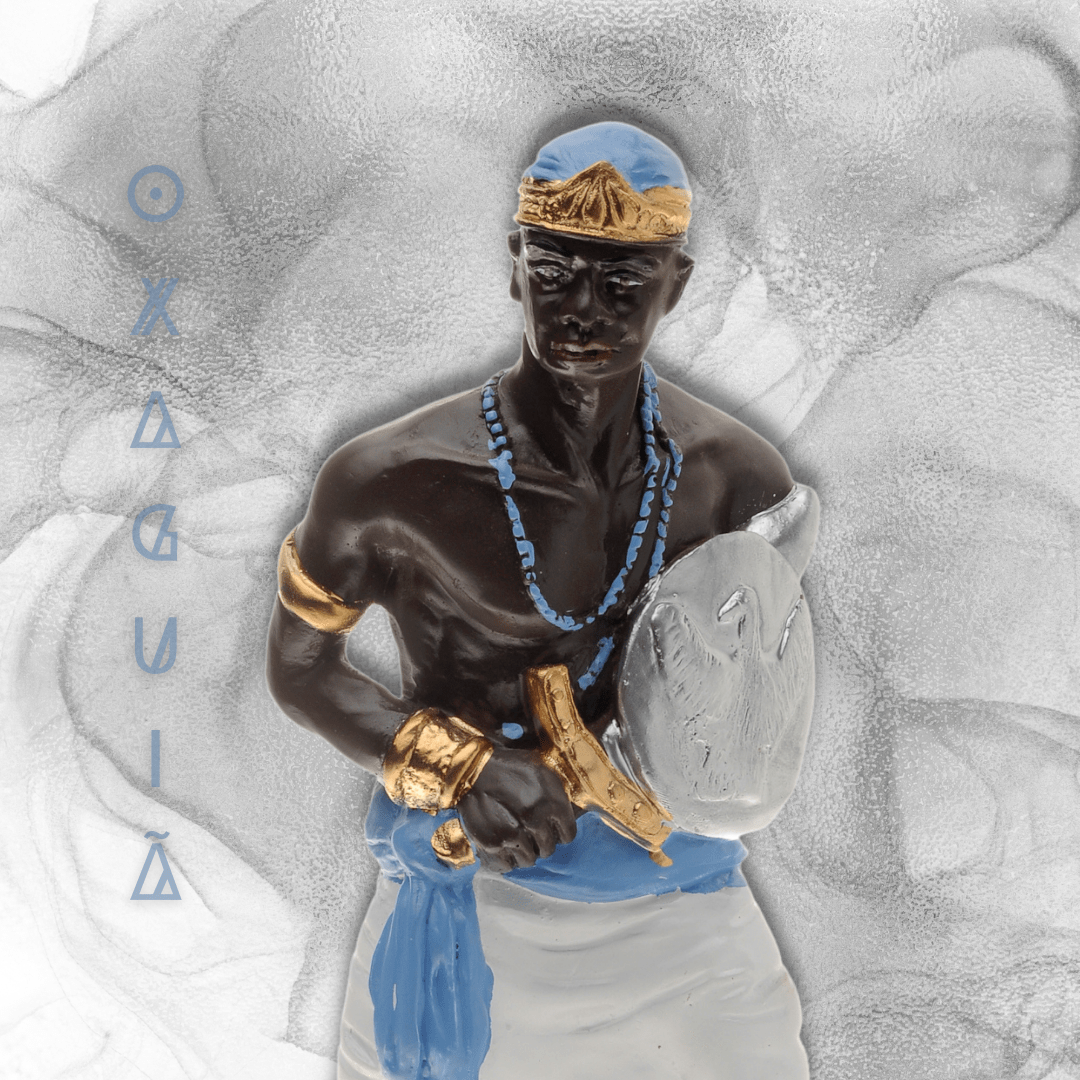 Imagem de Oxaguiã. Nós acreditamos que as imagens sacras têm o poder de proteger e guiar nossos caminhos. É por isso que colocamos tanto amor e dedicação em cada imagem que produzimos. Selecionamos cuidadosamente matérias-primas e trabalhamos artesanalmente para produzir cada imagem.
